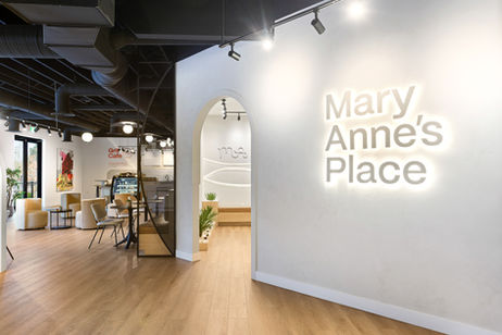 This bold and modern presentation center seamlessly integrates functionality, branding, and community engagement. Designed to make a lasting impression, the space features strategic pops of the brand’s signature color, reinforcing identity while maintaining a refined and contemporary aesthetic.